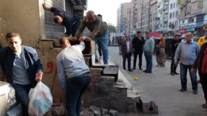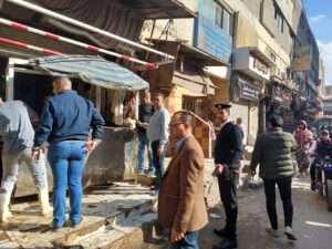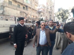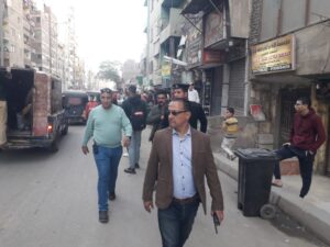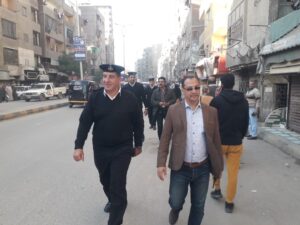 رئيس حي العمرانية المهندس عبدالله عبدالعظيم واللواء هشام عبدالصمد قائد شرطه المرافق بالجيزة يشنان حمله اشغالات مكبره علي شارع عثمان محرم