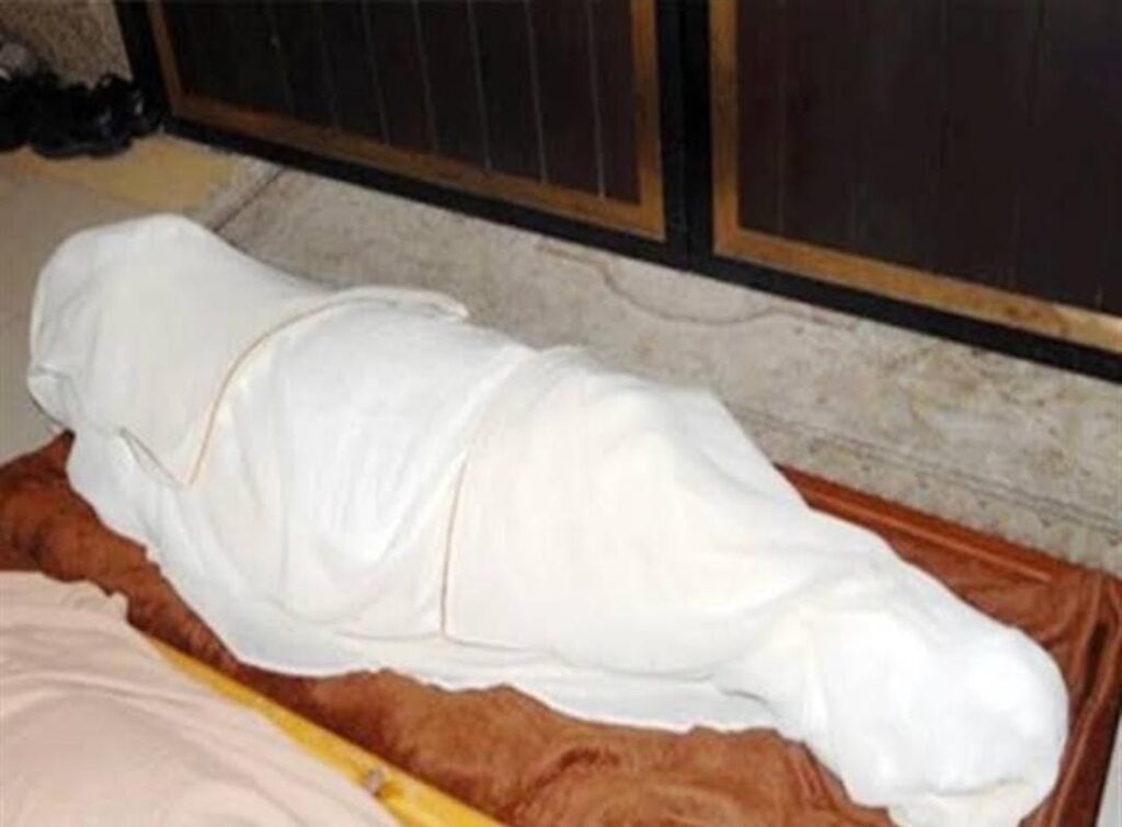 وقد تم البحث عن الجثة وتم العثور عليها تحت سرير النوم ملفوفة في ملاءة بها عدة طعنات. تم القبض على المتهم واعترفت بأنها جاءت للضحية بسبب العلاقة التي تربطهما ، وأنها وضعت حبوب مخدرة للضحية في شراب ، وضبطت هاتفه المحمول وبعض المنقولات.