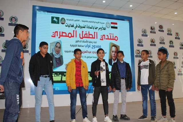 ومن جانبها اشارت المهندسه لبنى عبد العزيز نائبة المحافظ إلى أنه تحت رعايه محافظ الشرقية وبالتعاون بين المحافظة والمجلس القومي للطفوله والأمومة اقيمت أولي فعاليات منتدى الطفل المصري للأطفال بمحافظة الشرقية وذلك بمسرح مدرسة الزقازيق الثانوية العسكرية ، في حضور المهندس محمد فؤاد الرشيدي وكيل اول وزارة التربية والتعليم ، والاستاذة دعاء زكريا مدير عام الشئون التنفيذية بالمديرية ، و الدكتور شحته حسني حسين عميد كلية التربية والطفولة بجامعه الزقازيق ، والأستاذه هبة محمد محمد أحمد مديرة الوحدة العامة لحماية الطفل بالمحافظة ، والأستاذ إسماعيل إبراهيم عبد المعطي رئيس الإتحاد الإقليمي للجمعيات الأهلية ، وممثلين عن ( مديرية الشباب والرياضة – مديرية التضامن الاجتماعي- الهيئة العامة لقصور الثقافة – مديرية الصحة –الازهر – مطرانية الزقازيق ومنيا القمح – الاتحادات الطلابية ) وبمشاركة 250 طالب وطالبة من مختلف الإدارات التعليمية وعدد من أولياء الأمور والعاملين بالتربية والتعليم .