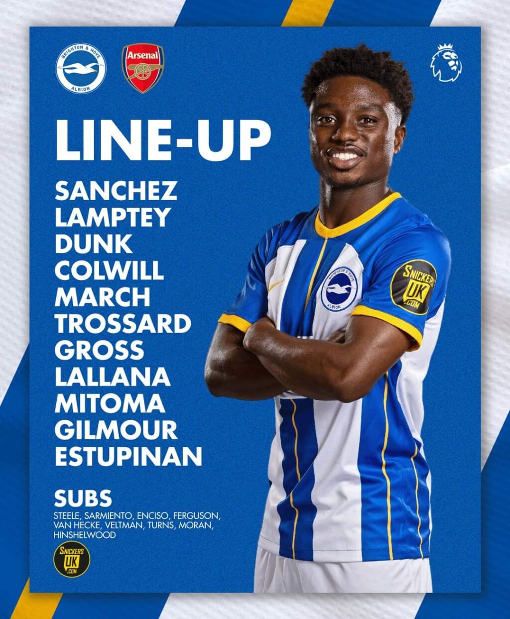 أعلن ” روبيرتو دي زيربي” المدير الفني للفريق الأول لكره القدم بنادي برايتون عن تشكيل فريقه الرسمي الذي سيواجه به نظيره فريق ارسنال الإنجليزي اليوم.
