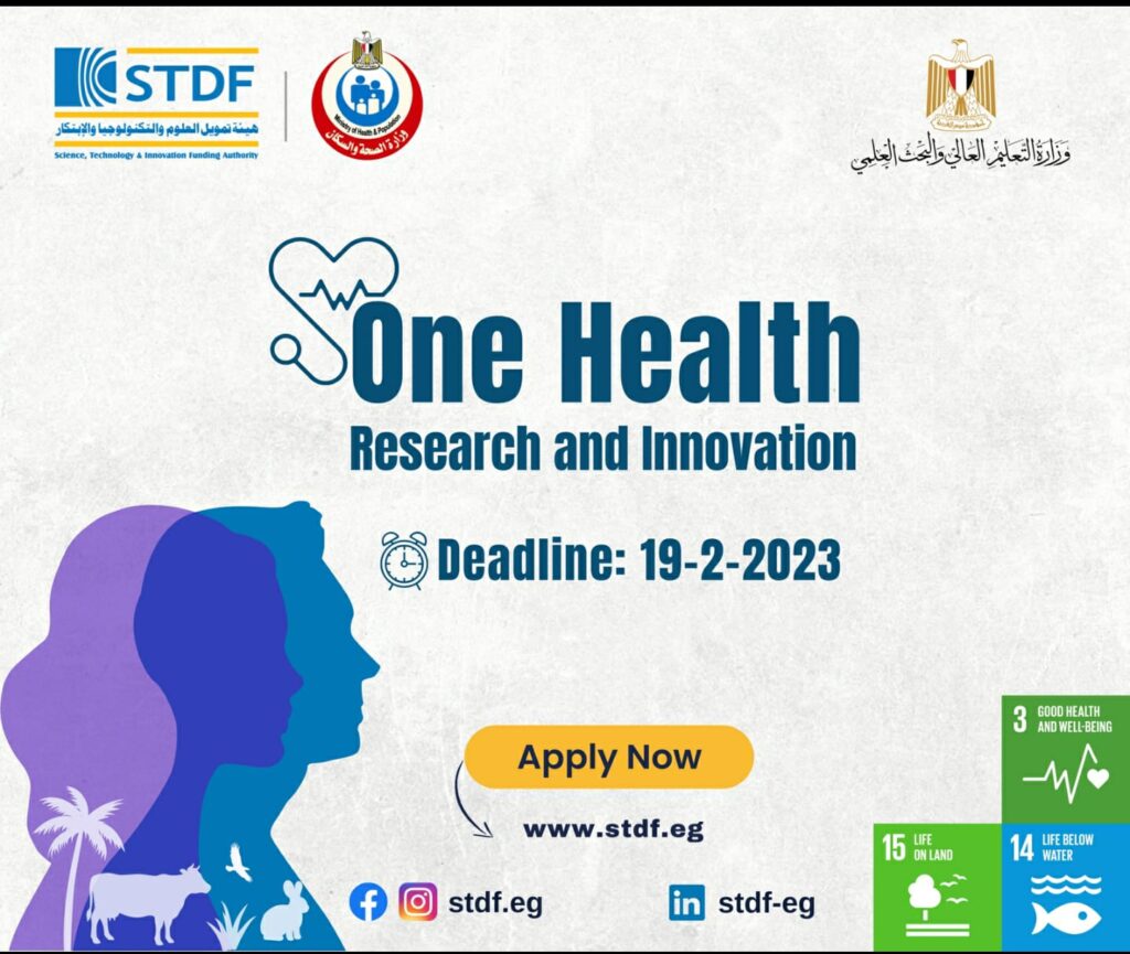 أعلنت هيئة تمويل العلوم والتكنولوجيا والابتكار (STDF)، عن فتح باب التقدم للنداء البحثي الأول لمنحة “الصحة الواحدة”، تفعيلا لبروتوكول التعاون المبرم مع وزارة الصحة والسكان؛ بهدف دعم الأبحاث والابتكارات التي تساهم في تعزيز الترابط بين القطاعات (الطبية والبيطرية والبيئية).