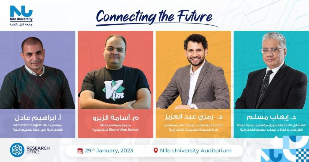 في حدث غير مسبوق تستضيف جامعة النيل الأهلية اليوم الأحد الموافق 29 يناير الجاري بمقر الجامعة بالشيخ زايد ٤ من أكثر المؤثرين والمُلمهمين في الوطن العربي من اصحاب المبادرات التعليمية والعلمية والبحثية الرائدة في حدث استثنائي يحمل عنوان ” “Connecting The Future”.