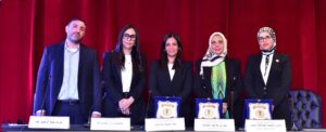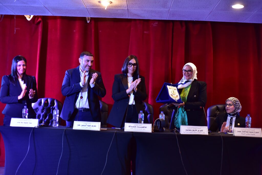 وقامت الدكتورة شاهيناز شحاتة مدير عام المدارس ، بتكريم القاضيات بتقديم درع المدارس لهن وسط تحية الحضور من هيئة التدريس والطلاب .