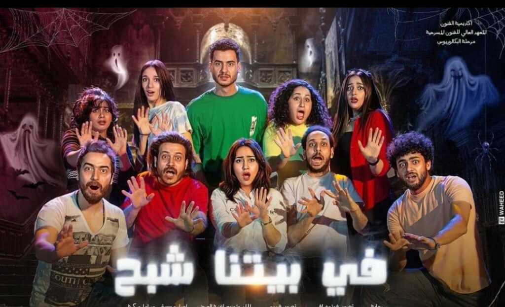 فى بيتنا شبح من تأليف لينين الرملي وتحت إشراف الدكتورة انجي البستاوي وبطولة نخبة من شباب المعهد العالي للفنون المسرحية ويتكون فريق العمل من طالبات قسم الديكور لتنفيذ ديكور العمل وتحت إشراف الدكتور نبيل الحلوجى أستاذ الديكور بالمعهد وأحمد فرحات تصوير فوتوغرافي وابوالعزايم الوكيل تصوير فيديو و رحمة عمر مكياج ومصطفى حجازى الحان وتوزيع اغنية العرض وإبراهيم الزيادى اعداد موسيقى ودراما حركية ومحمد سعد إضاءة ومحمد وحيد دعاية وتحت متابعة شريهان الشاذلى المعيدة بقسم التمثيل والإخراج.