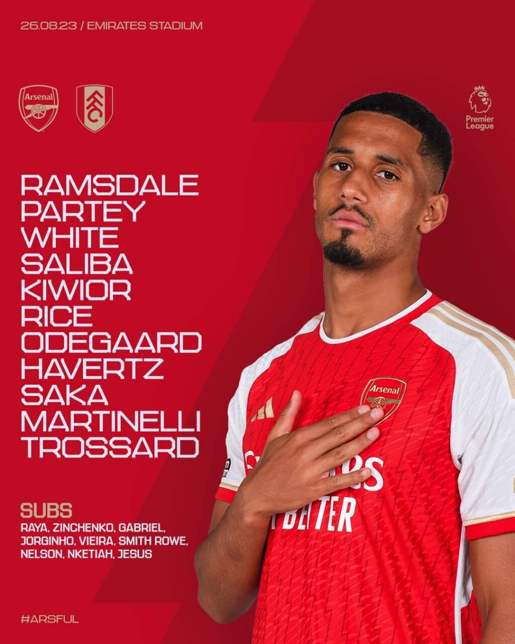 خط الهجوم: جابريل مارتينلي – تروسارد – بوكايو ساكا.