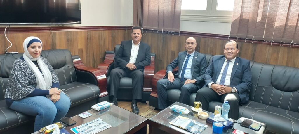 استقبل الدكتور جان هنري حنا رئيس جامعة بني سويف التكنولوجية أ. حسام عبد القادر رئيس الإدارة المركزية لريادة الأعمال، و د. أحمد الحلفاوي مدير عام ريادة الأعمال “مركز فكرتك شركتك” لبحث التعاون المشترك في مجال ريادة الأعمال.
