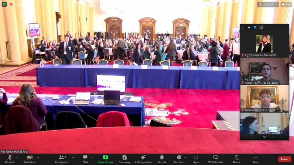 حيث شارك عدد من طلاب المدارس الدولية المصرية مع المجلس الثقافي البريطاني بالمملكة المتحدة في خمس مؤتمرات طلابية كمحاكاة افتراضية لمفاوضات المناخ COP 28 وشملت تلك الأحداث نماذج محاكاة تم تنفيذها خلال شهر نوفمبر الماضي منها يوم 16 نوفمبر في جامعة إدنبرة بإدنبرة، وفي 23 نوفمبر في ذا سيند كارديف، وفي 27 نوفمبر في مدرسة ويليام هولم في مانشستر، وفي 30 نوفمبر في قاعة مدينة بلفاست، وفي الأول من شهر ديسمبر الجاري 2023 كان نموذج المحاكاة في المجلس الثقافي البريطاني بولاية ستراتفورد في لندن.