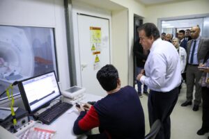 وأوضح الدكتور حسام عبدالغفار، المتحدث الرسمي لوزارة الصحة والسكان، أن الوزير استهل جولته بتفقد قسم الطوارئ بالمستشفى، واطلع على جدول الحضور والانصراف الخاص بالأطقم الطبية والاستشاريين، كما تفقد وحدة الرنين المغناطيسي ووحدة أشعة الـ X Ray، وتفقد غرف الرعاية المركزة، واستمع إلى شكوى أحد المواطنين، ووجه بسرعة علاج المواطن على نفقة التأمين الصحي ورد المبلغ المالي الذي تم تحصيله منه.