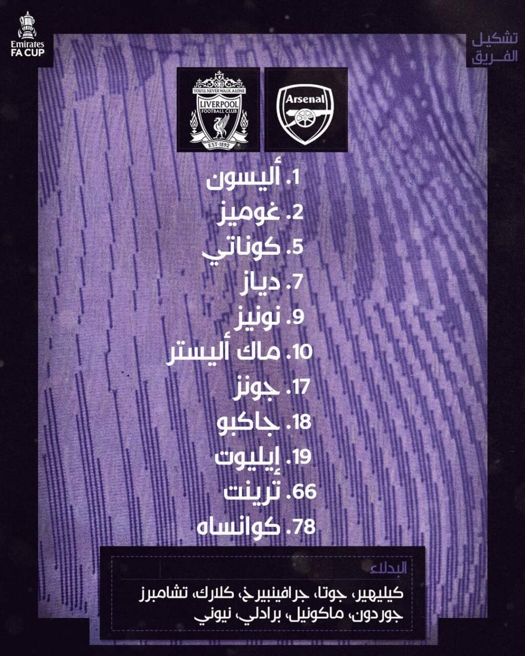أعلن يورجن كلوب المدير الفني لفريق ليفربول، تشكيل فريقه الرسمي لمواجهة نظيره آرسنال، في المباراة المقرر لها مساء اليوم، في كأس الإتحاد الإنجليزي.