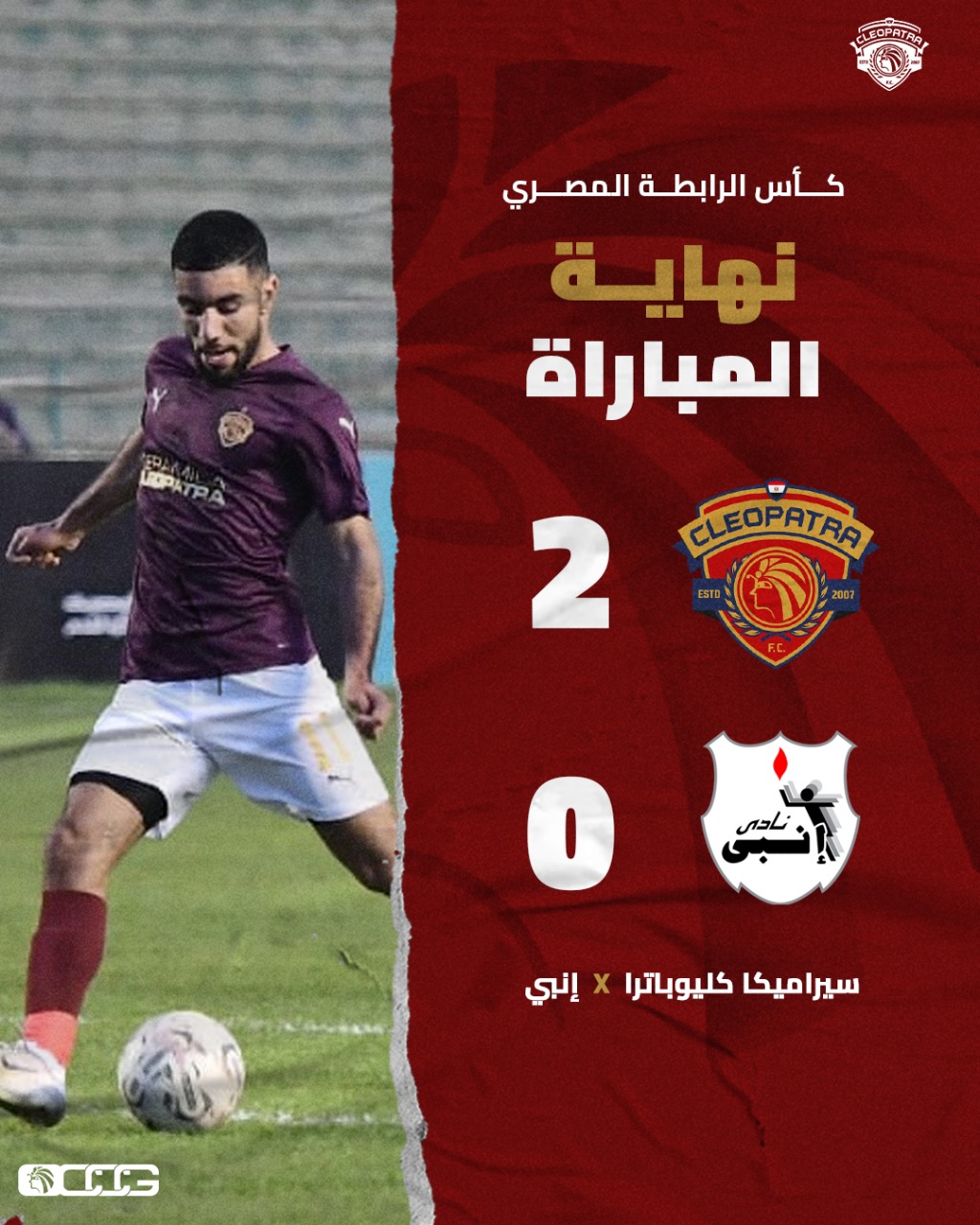 إنتهت منذ قليل مباراة جمعت بين فريق كرة القدم بنادى سيراميكا كليوباترا وخصمه فريق إنبى، والتى أصفرت أحداثها عن فوز مستحق لفريق سيراميكا كليوباترا بهدفين دون مقابل، وذلك ضمن إطار مواجهات الجولة الأولى فى كأس الرابطة المصرية لموسم 2023-2024.
