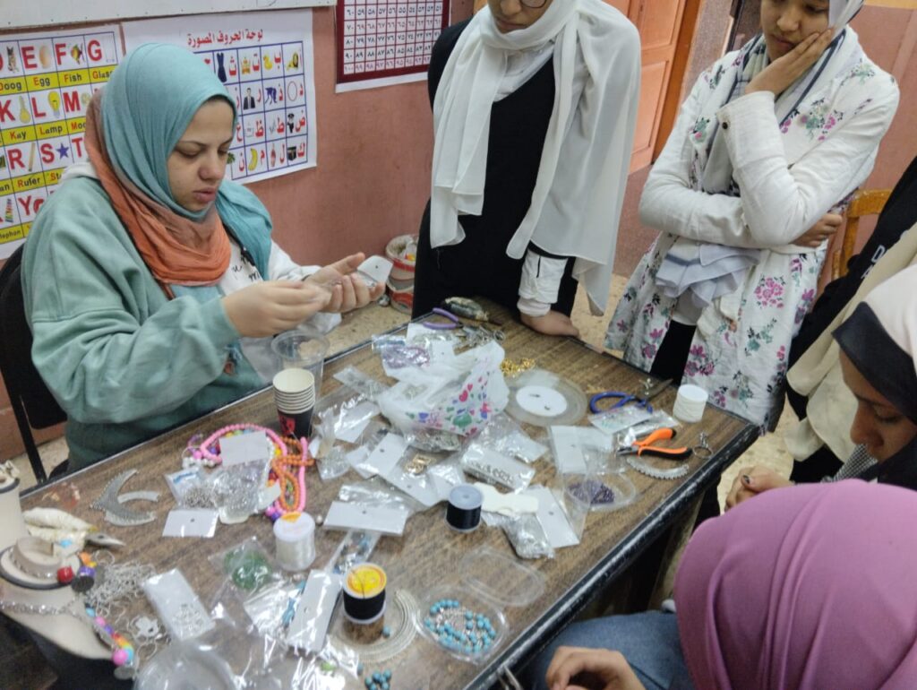 تناولت الورشة تعليم الفتيات صناعة الاكسسوارات بعدد مستفيدين 25 فتاة ، والتي تناولت فيه المدربة شيماء محمد عبد المنعم المواد الخام اللازمة لصناعة الاكسسوارات وكيفية بدء مشروع صغير من المنزل .