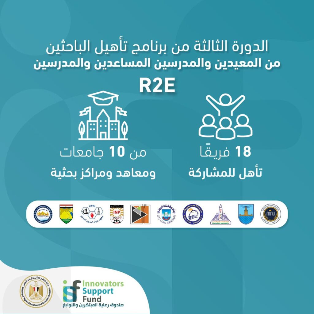 برعاية د.أيمن عاشور وزير التعليم العالي والبحث العلمي، انتهت فعاليات الدورة الثالثة من البرنامج التدريبي لتأهيل الباحثين لريادة الأعمال بالجامعات والمعاهد والمراكز البحثية (R2E)، والتي نظمها صندوق رعاية المبتكرين والنوابغ التابع للوزارة خلال الفترة (5 ديسمبر 2023 – 5 مارس 2024) لتدريب الباحثين على المهارات اللازمة لتحويل أبحاثهم العلمية المبتكرة إلى شركات ناشئة، ومنتجات على أرض الواقع.