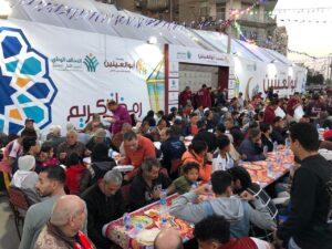 تقيم مؤسسة ابو العينين الخيرية عضو التحالف الوطني للعمل الاهلي والتنموي مائدة رمضانية بشارع البحر الأعظم بالجيزة تتسع ل ٧٠٠٠ آلاف ضيف يوميا وطوال شهر رمضان الكريم