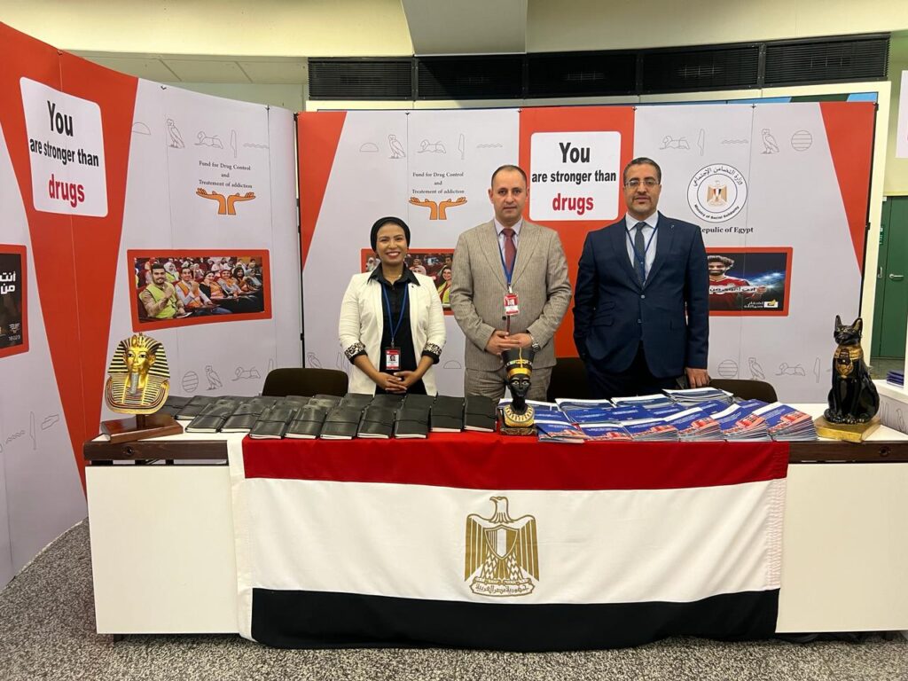 حرص صندوق مكافحة وعلاج الادمان والتعاطي برئاسة الدكتورة نيفين القباج وزيرة التضامن الاجتماعي ورئيس مجلس إدارة الصندوق على تزيين معرض الصندوق داخل مقر مبنى الامم المتحدة بفيينا بعلم مصر ،حيث يشارك الصندوق في اجتماعات الدورة 67 الشق رفيع المستوى للجنة الدولية للرقابة على المخدرات المنعقدة بمقر مكتب الأمم المتحدة للمخدرات والجريمة فى فيينا بمشاركة ممثلى 105 دولة وأيضا حضور أنتوني بلينكن وزير الخارجية الأمريكي والسفير محمد الملا سفير مصر في النمسا والمندوب الدائم لمصر لدى الامم المتحدة بفيينا ويترأس وفد الصندوق الدكتور عمرو عثمان مساعد وزير التضامن الاجتماعي ومدير الصندوق .