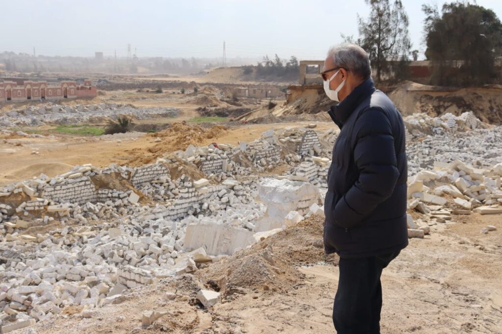 وخلال الجولة تلاحظ وجود خيمة مخالفة على شريط السكة الحديد بالجبل الأصفر، وقد وجه بإزالتها على الفور مشددا على رئيس المدينة بضرورة تنفيذ الإزالة الفورية لأي مخالفات بناء أو تعديات على الأراضي الزراعية وأملاك الدولة، والمتابعة المستمرة لمنع أي تعديات وإيقاف البناء المخالف في المهد للحفاظ على الرقعة الزراعية