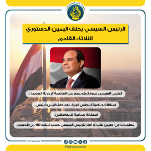 في خطوة تاريخية تعكس استقرار النظام الديمقراطي في مصر، من المقرر أن يؤدي الرئيس عبد الفتاح السيسي اليمين الدستورية يوم الثلاثاء المقبل أمام البرلمان، في حضور أعضاء مجلس النواب، ستقام هذه الجلسة الاستثنائية في العاصمة الإدارية الجديدة، وتأتي كجزء من إجراءات تنصيبه لولاية رئاسية جديدة.