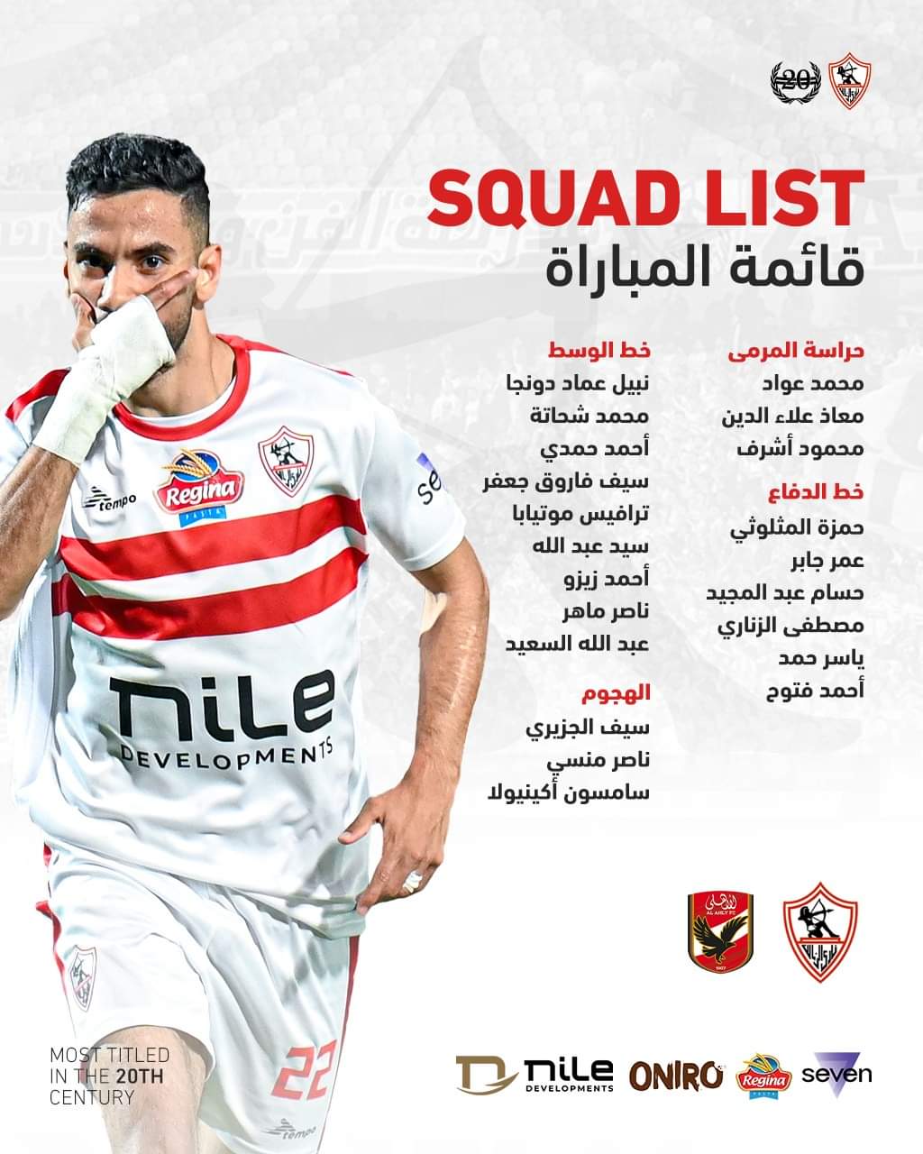 خط الوسط : نبيل عماد دونجا – محمد شحاتة – أحمد حمدي – سيف فاروق جعفر – سيد عبد الله “نيمار” – ترافيس موتيابا – ناصر ماهر – عبد الله السعيد – أحمد مصطفى “زيزو”.