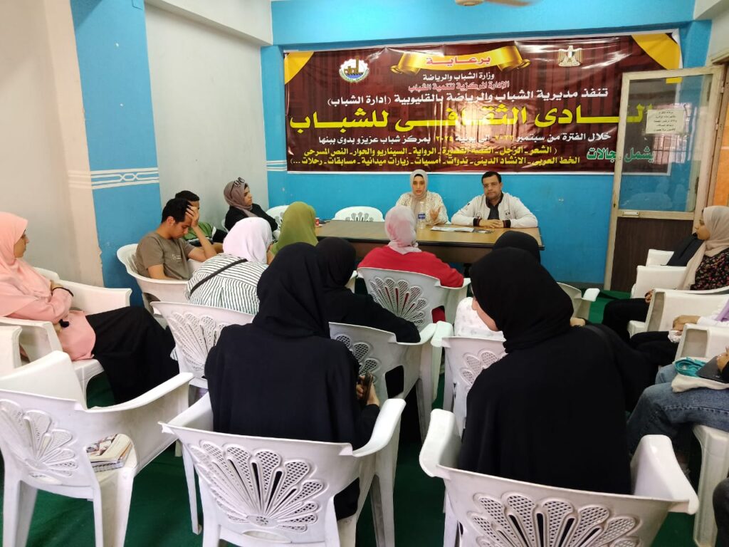 نظمت مديرية الشباب والرياضة بالقليوبية(إدارة الشباب) ندوة توعوية حول *مجابهة المخدرات والادمان والتعاطي* وذلك ضمن خطة النادي الثقافي شهر ابريل ٢٠٢٤بمقر النادي بمركز شباب عزيز وبدوي ببنها .