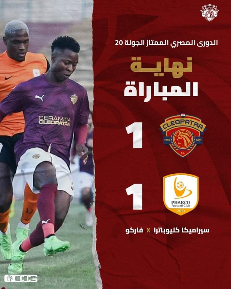 وبهذه النتيجة يرفع فريق سيراميكا كيلوباترا رصيده إلى 25 نقطة في المركز التاسع بترتيب جدول الدوري المصري من 18 مواجهة، فيما يرفع فريق فاركو رصيده إلى 13 نقطة في المركز السادس عشر من 18 لقاء.
