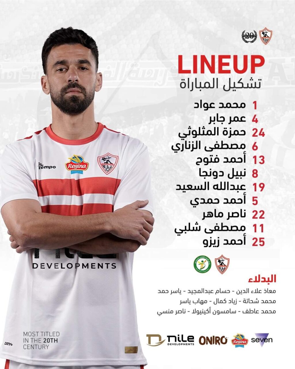 خط الوسط : نبيل عماد دونجا – عبد الله السعيد –أحمد حمدي .