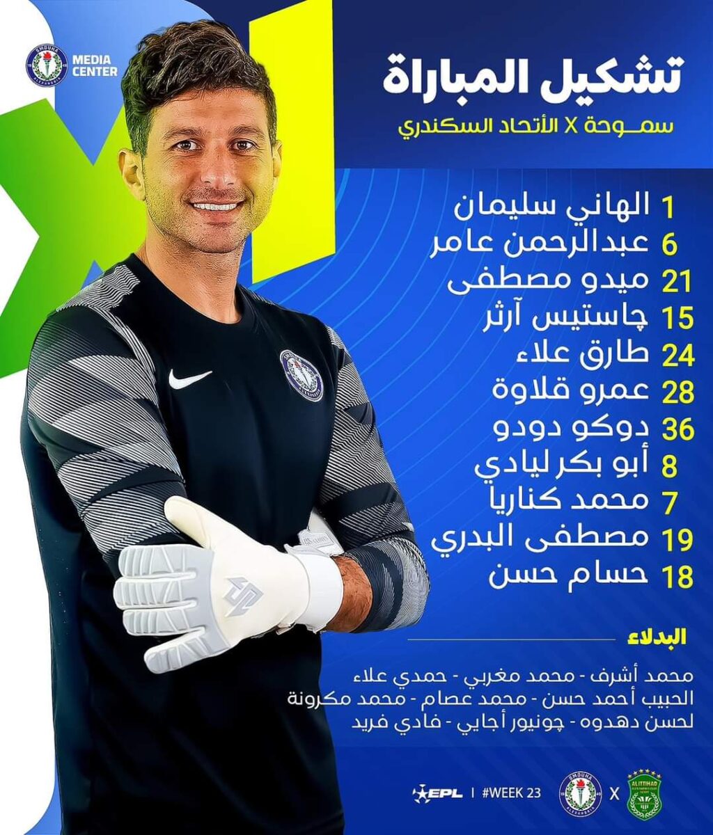 وأعلن أحمد سامي المدير الفني لفريق سموحة عن تشكيل فريقه لمواجهة اليوم وجاء التشكيل كالآتي :