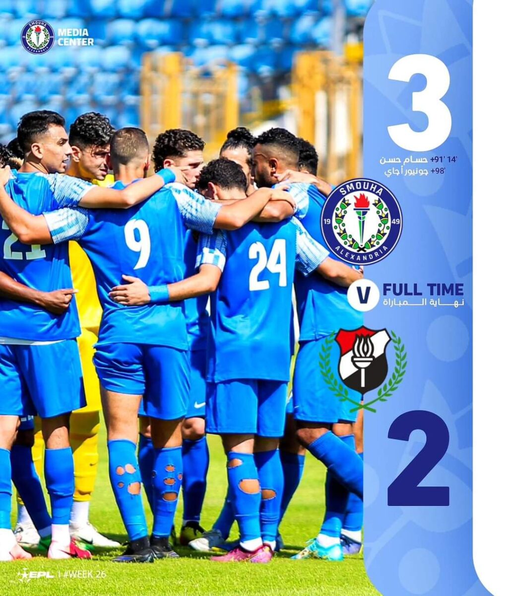 وفي الدقيقة التاسعة من الوقت المحتسب بدل الضائع لاحداث الشوط الثاني والمباراة تمكن جونيور اجاي لاعب سموحة إحراز هدف الثالث والتقدم مرة أخرى لصالح فريقه ف الوقت القاتل من تمريرة مساعدة ل عبداللطيف بن قسو.