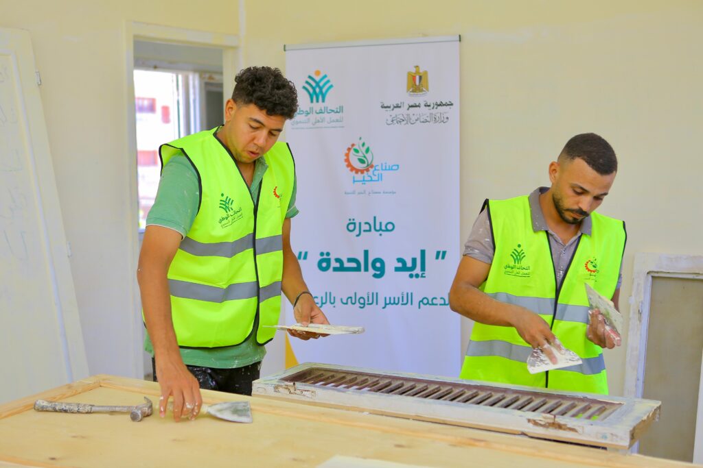 ضمن جهود تنفيذ مبادرة التحالف الوطنى ايد واحدة اطلقت مؤسسة صناع الخير للتنمية عضو التحالف الوطنى للعمل الاهلي التنموي المرحلة الثانية من اعمال اعادة اعمار مبانى دار عائشة حسنين لرعاية الايتام بالفيوم بعد الانتهاء من المرحلة الاولى والتى شملت رفع كفاءة وفرش احد مبانى الدار باثاث كامل