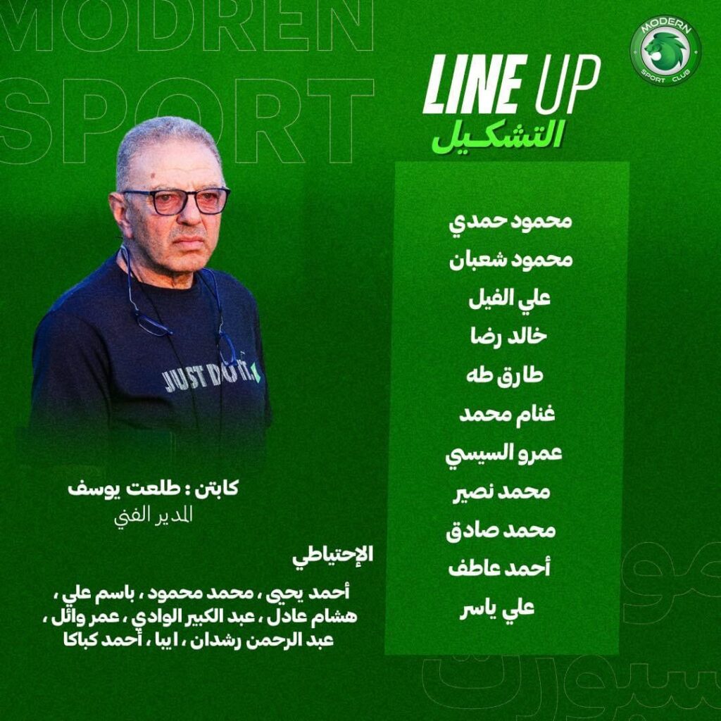 أعلن طلعت يوسف المدير الفني لفريق مودرن سبورت عن تشكيل الفريق لمواجهة فريق زد بكأس مصر.