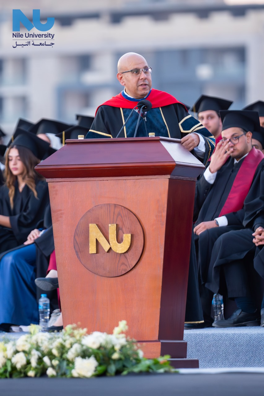 وقال الدكتور وائل عقل، رئيس جامعة النيل، في كلمته أمام الخريجين، أننا نحتفل هذا العام ونحن نرى العديد من أبنائنا الخريجين من برامج الدراسات العليا ينافسون أقرانهم حول العالم في أعرق الجامعات العالمية وبعض منهم قد عاد ليلتحق مرة أخرى بهيئة التدريس بجامعة النيل كما أن بعضاً منهم قد انضم بالفعل لهيئات التدريس بالجامعات المرموقة حول العالم، كما نري خريجينا من الدراسات العليا والدراسات الجامعية يتبوؤون مناصب قيادية أو يعملون بمؤسسات عريقة في مصر أو صاروا من أصحاب الأعمال ممن أنشأوا شركات صغيرة وحققوا نجاحاً باهراً داخل مصر وخارجها، ونحن نفخر بهم ونباهي بإنجازاتهم، وقد نجحت جامعة النيل هذا العام بفضل الله في ترسيخ الأسس والمحاور التي خُطِطَت لها منذ نشأتها وتحقيق نجاحات باتت للعيان في كافة المجالات الأكاديمية والبحثية والريادية وخدمة المجتمع وهي المجالات الأربع والتي تتمحور حولها المؤسسات التعليمية العريقة صاحبة الدور في رقي أممها.