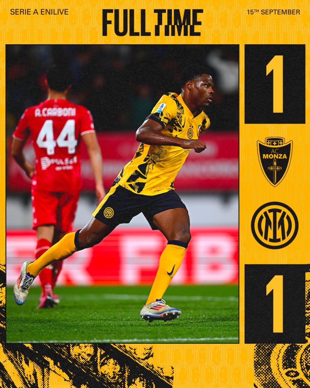 تعادل إيجابيًا فريق إنتر ميلان لكرة القدم بهدف مقابل هدف من جانب خصمه فريق مونزا، في المباراة التي جمعت بينهما اليوم الأحد على ملعب يو باور ستاديوم، ضمن لقاءات الجولة الرابعة بالكاليتشو.