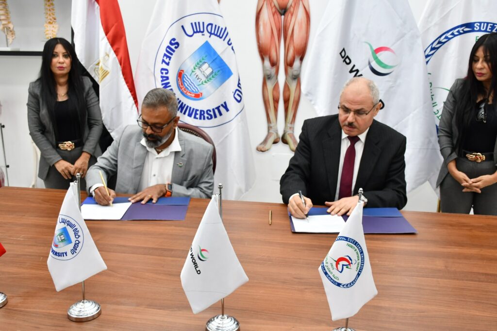 في إطار التعاون المشترك بين جامعة قناة السويس ومجموعة موانئ دبي العالمية مصر “دي بي ورلد -السخنة”، تم توقيع بروتوكول تعاون بين الطرفين لإمداد كلية العلاج الطبيعي بالجامعة بمعمل تشريح إلكتروني تعليمي مزود بأحدث التقنيات الطبية الحديثة للكشف عن جسم الإنسان بخاصية ثلاثية الأبعاد لمعرفة وتشخيص مكان الإصابة بدقة.