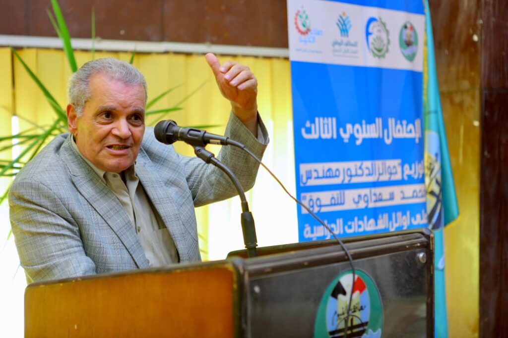 في كلمته بالاحتفالية التي ألقاها نيابة عنه السكرتير العام المساعد اشاد الدكتور أحمد الأنصاري محافظ الفيوم بفكرة جائزة دكتور مهندس محمد سعداوي للتفوق لدعم وتحفيز أوائل الشهادات العامة على الاستمرار في النبوغ والتفوق مثمنا جهود صناع الخير في مجال دعم المنظومة التعليمية في انحاء المحافظة مشيدا بجهود المؤسسة في تنفيذ العديد والعديد من الانشطة الخيرية غير التقليدية وذات الجودة في انحاء الفيوم منها اطلاق مبادرة لمصر نبنى اجيال لدعم صحة طلاب المدارس فى قرى المحافظة الاشد احتياجا و اعادة اعمار القرى الاشد احتياج وانشاء مركز استدامة لخلق فرص عمل للسيدات المعيلات وتنظيم القوافل الطبية بشكل متتابع والتي جابت معظم قرى المحافظة بما تقدمه من منظومة خدمات طبية متكاملة في مجال العيون.