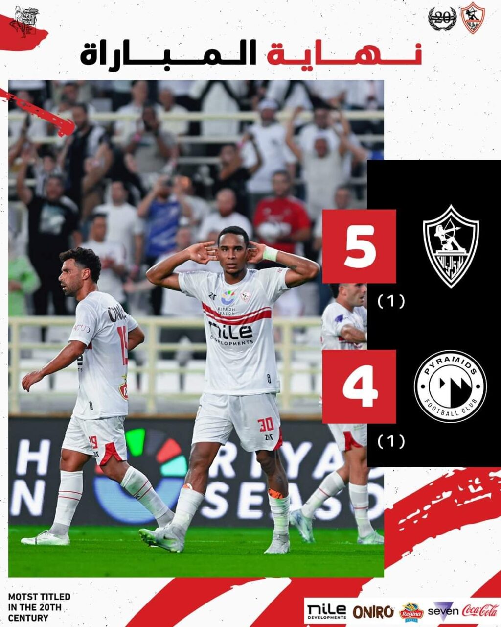 أحرز هدف بيراميدز إبراهيم عادل في الدقيقة الرابعة عشر، وتعادل التونسي سيف الدين الجزيري للزمالك في الدقيقة الـ40.