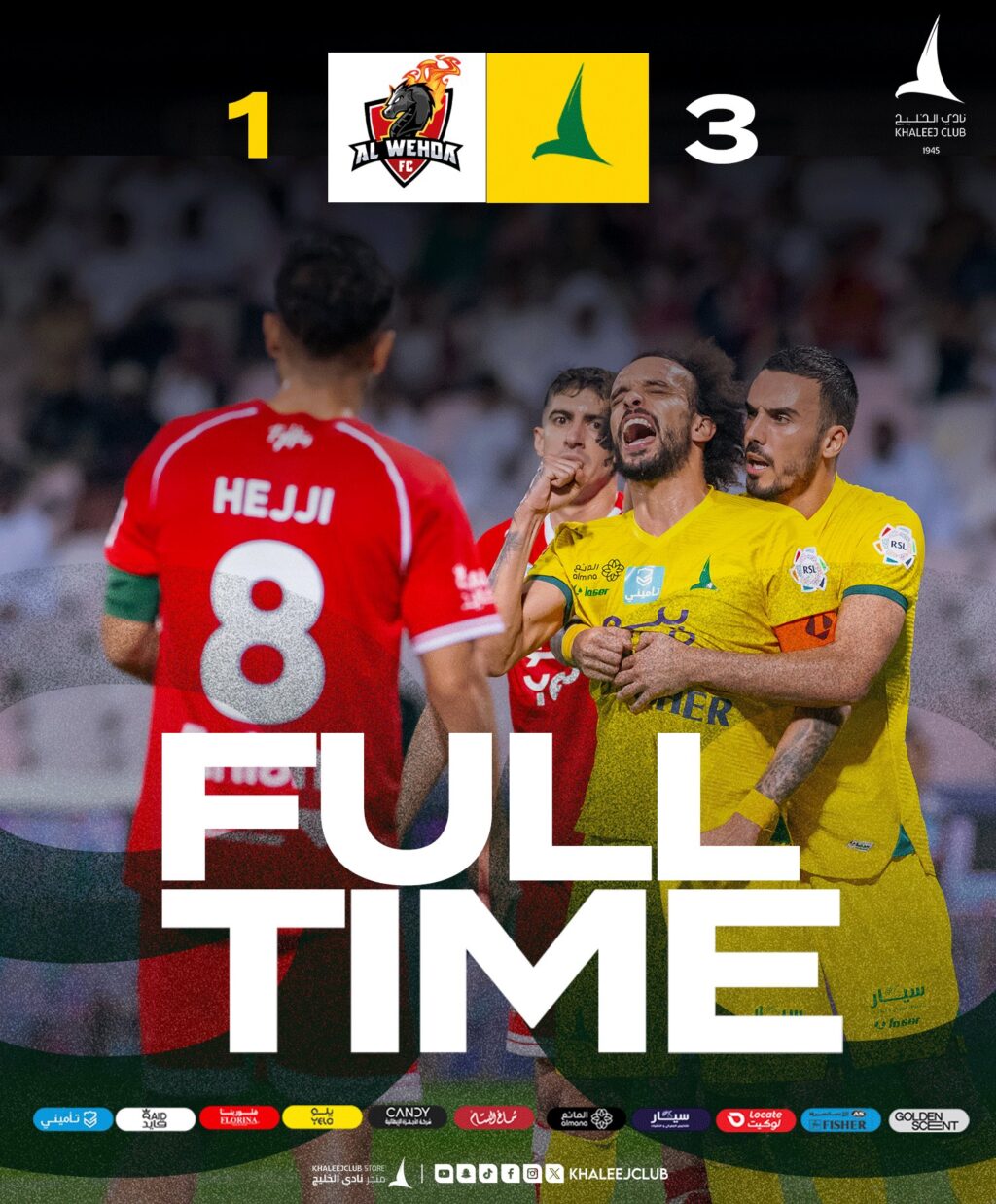 وفي الدقيقة 72 من عمر الشوط الثاني واللقاء أضاف خالد ناري لاعب الخليج هدف الأمان الهدف الثالث لصالح فريقه، لتصبح النتيجة ثلاثة أهداف مقابل هدف وحيد.