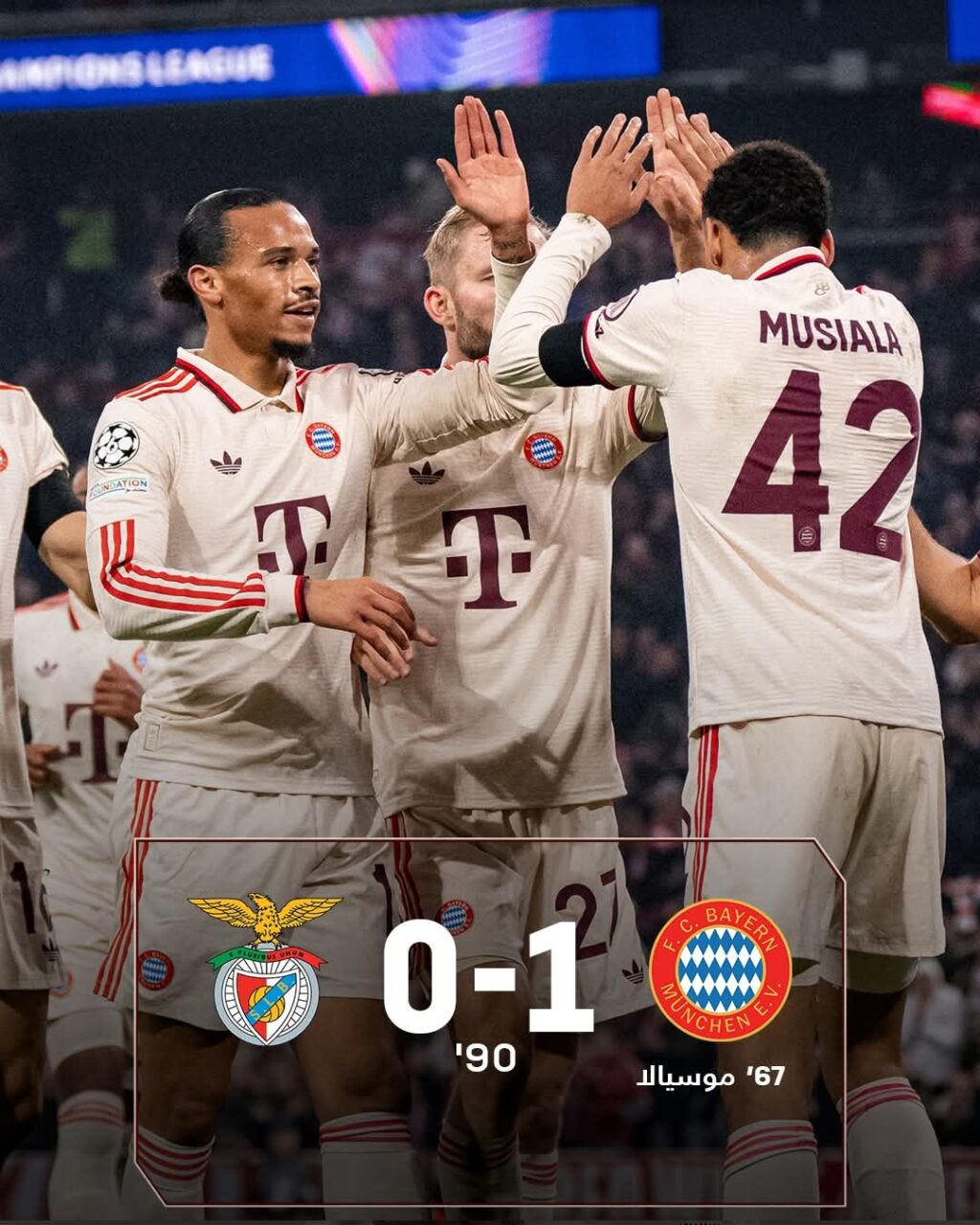 انتهت المباراة التي جمعت بين بايرن ميونيخ و بنفيكا، ضمن منافسات الجولة الرابعة من بطولة دوري أبطال أوروبا، بفوز بايرن ميونيخ بنتيجة 1/0.