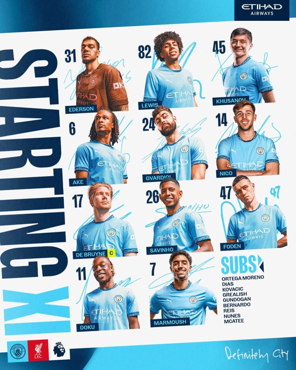 وجاء تشكيل السيتي الرسمي لمواجهة ليفربول على النحو التالي :