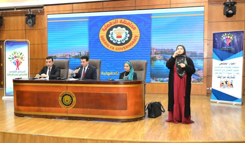 يذكر أيضاً أن جلسة الحوار المجتمعي افتتحها اللواء عماد الدين عبد الله، السكرتير العام المساعد لمحافظة الدقهلية، والمستشار عمرو جاب الله، المستشار القانوني للمجلس القومي للأشخاص ذوي الاعاقة، والدكتورة هبة عبد المنعم، رئيس الإدارة المركزية للاستراتيجيات الوطنية بمجلس الوزراء، والدكتورة نعمة زهران، المدير التنفيذي لمركز المعلومات ودعم اتخاذ القرار بمجلس الوزراء، بحضور محمد عز الدين، وكيل مديرية التضامن الاجتماعي بالدقهلية، والعديد من ممثلي الإدارات التنفيذية والجهات المعنية، والأشخاص ذوي الإعاقة أنفسهم في محافظة الدقهلية باعتبارهم أصحاب المصلحة.