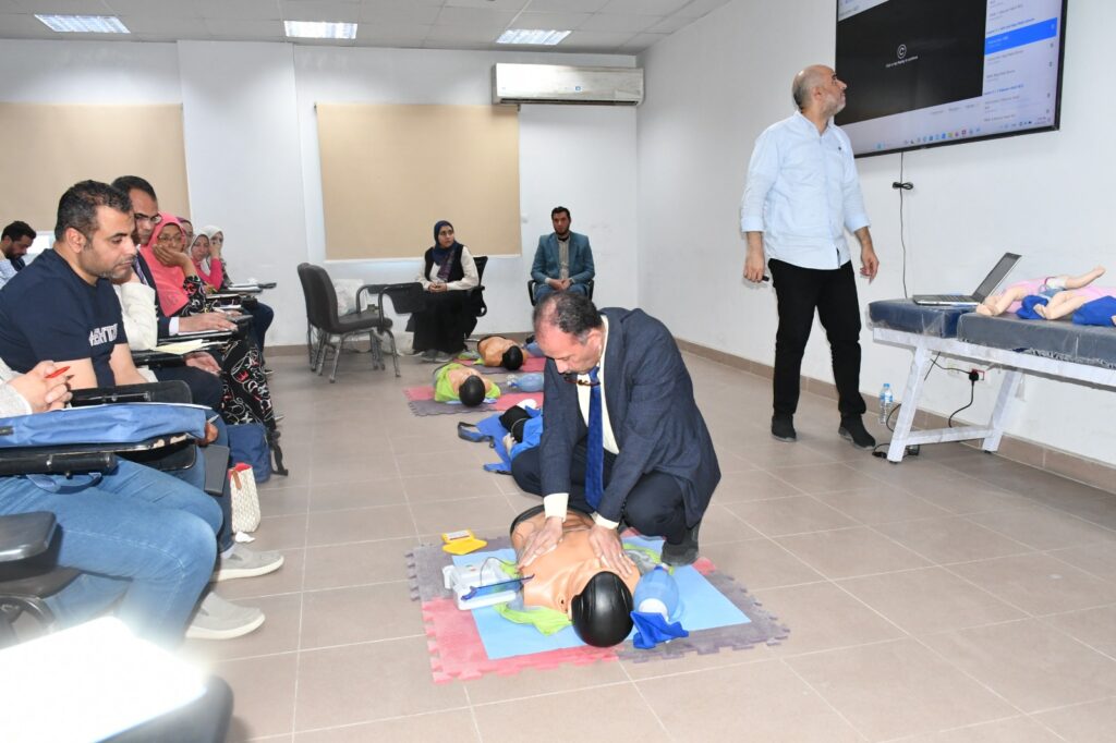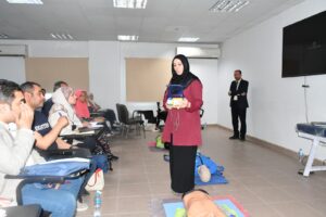 وأضاف ان التدريب تم تنفيذه تحت إشراف الدكتور هاني الشهيدي مدير مركز تدريب انعاش القلب بالهيئة، وممثل جمعية القلب الأمريكية بالشرق الأوسط، والدكتورة إلهام عزت مدير إدارة مكافحة العدوى بالهيئة، وأيضاً فريق من المدربين المعتمدين من جمعية القلب الأمريكية.