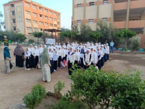 وأشارت وكيل الوزارة إلى أنها تابعت منذ الصباح الباكر مع مديري الإدارات التعليمية انتظام سير العملية التعليمية واستقبال الطلاب في أول أيام العام الدراسي الجديد، مقدمة لهم التهنئة ومتمنية لهم عاماً دراسياً موفقاً. وأكدت على أهمية الأنشطة التربوية والاهتمام بطابور الصباح وتحية العلم والنشيد الوطني والإذاعة المدرسية بما يعزز قيم المواطنة والانتماء، إلى جانب التوعية بالمشروعات القومية والمبادرات الرئاسية وخاصة “حياة كريمة”، والتعريف بالتغيرات المناخية وآثارها على البيئة.