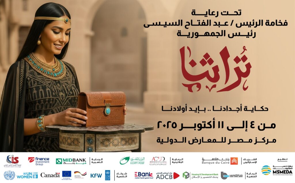 أعلن جهاز تنمية المشروعات المتوسطة والصغيرة ومتناهية الصغر عن انطلاق معرض تراثنا ٢٠٢٥ الذي يقام سنويا تحت رعاية السيد الرئيس عبد الفتاح السيسي رئيس الجمهورية وذلك بمركز مصر للمعارض الدولية بالتجمع الخامس من 4: 11 أكتوبر القادم