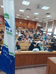 كما شاركت الدكتورة رانيا زايد ميدانيًا في فعاليات الحملة، والتي تضمنت المرور على الطلاب المصريين والوافدين داخل المدرجات والقاعات الدراسية للتعريف بأنشطة المكتب الأخضر، إلى جانب تنظيم ندوة تثقيفية بعنوان “المياه والصحة” ركزت على العلاقة الوثيقة بين جودة المياه وصحة الإنسان، وطرق الحفاظ على موارد مصر المائية وترشيد استهلاكها.