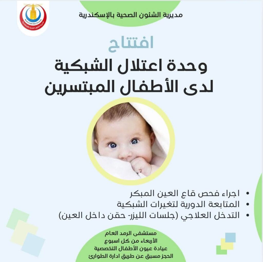 أعلن الدكتور محمد يحيى بدران وكيل وزارة الصحة بالإسكندرية عن بدء التشغيل الرسمي لوحدة اعتلال الشبكية لدى الأطفال المبتسرين