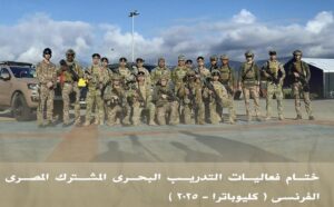 إختتمت فعاليات التدريب البحرى المشترك المصرى الفرنسى ( كليوباترا – 2025 ) ، والذى إستمرت فعالياته لعدة أيام بالمياه الإقليمية الفرنسية بمشاركة عدد من الوحدات البحرية وعناصر من القوات الخاصة البحرية المصرية والفرنسية ، ويأتى فى إطار خطة التدريبات المشتركة للقوات المسلحة مع الدول الصديقة والشقيقة لدعم آفاق التعاون العسكرى وتعزيز إجراءات الأمن البحرى بالمنطقة .