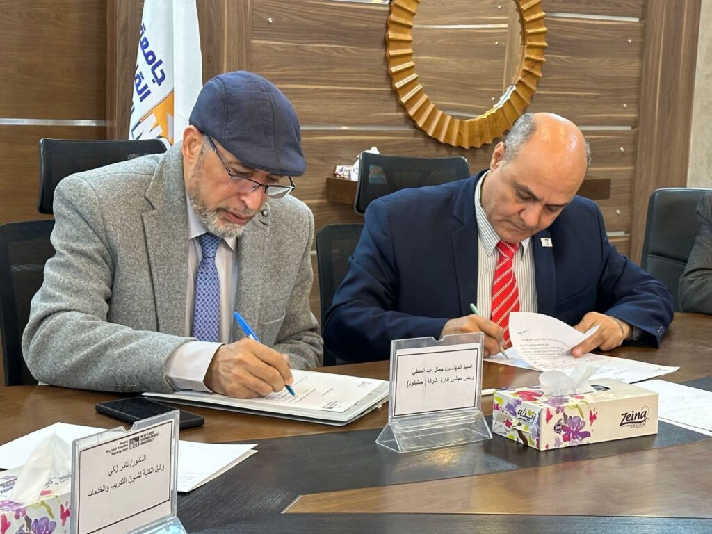 وقع البروتوكول الدكتور طارق عبد الملاك رئيس الجامعة، والمهندس جمال عبد العاطي رئيس مجلس إدارة الشركة، وذلك في إطار حرص الجامعة على توفير فرص تدريبية متميزة وبناء شراكات فاعلة مع كبرى الجهات المتخصصة في التدريب الهندسي.