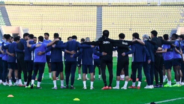 وتولى البرتغالي نونو كوستا ريبيرو مدرب الأحمال، الإشراف على الفقرة البدنية للاعبين والتي بدأت بالركض حول الملعب، بالإضافة إلى بعض التدريبات الخفيفة بالكرة.