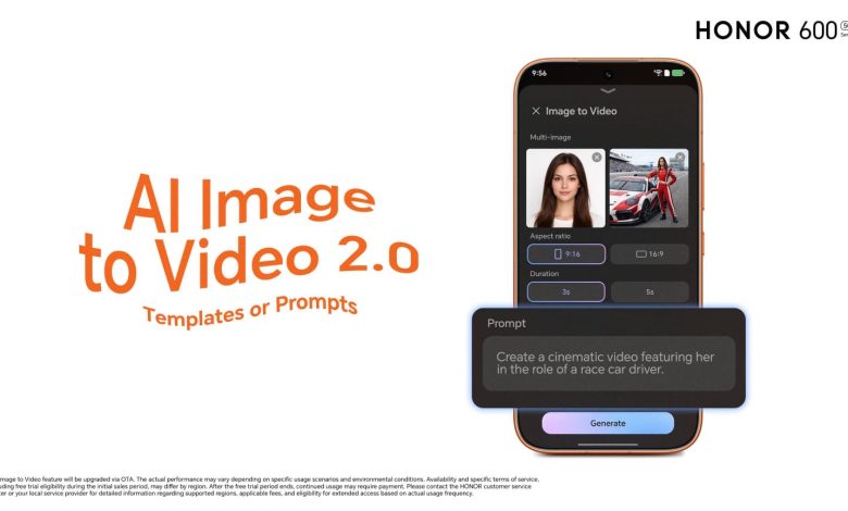 تقدم سلسلة HONOR 600 Series ميزة AI Image-to-Video 2.0 التي تتيح للعملاء تحويل الصور الثابتة إلى مقاطع فيديو باستخدام أوامر نصية بسيطة وقوالب جاهزة داخل الجهاز. وتفتح هذه الميزة المتقدمة آفاقاً إبداعية جديدة، إذ تمنح المستخدمين القدرة على تحويل الصور إلى محتوى مرئي وبصري أكثر حيوية وتفاعلاً بأسلوب سينمائي مبتكر.