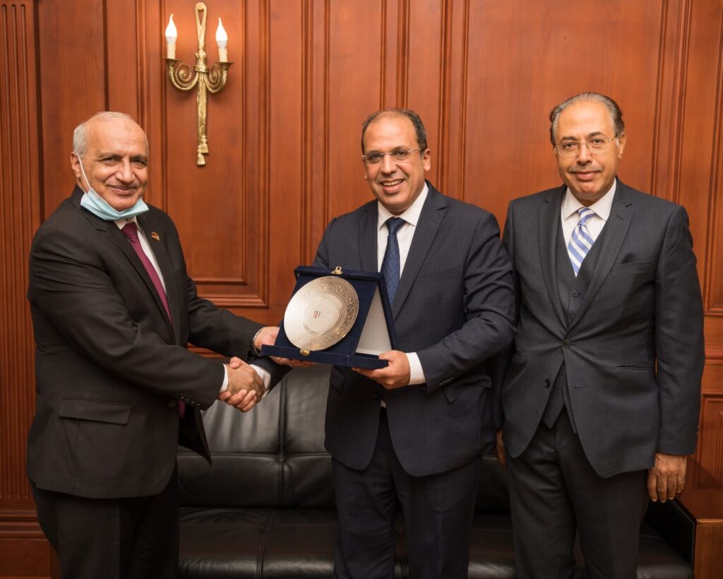 وأهدى الدكتور محمد لطفي، رئيس الجامعة البريطانية في مصر، درع الجامعة للدكتور سامي هاشم، رئيس لجنة التعليم بمجلس النواب، تعبيرًا عن تقديره لتلك الزيارة.