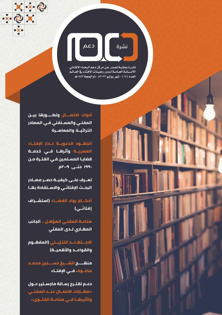 وأشارت كلمة التحرير إلى أنَّ فريق تحرير نشرة “دعم” حرص في ذلك العدد على مشاركة الباحثين والمعنيين بعلوم الإفتاء العديدَ من المصادر التي يمكن لهم الرجوع إليها في مجال الفتوى وأدوات الاتصال الحديثة، كما دفع في اتجاه تنمية ذلك الحقل البحثي باقتراح رسالة علمية موضوعها أدوات الاتصال وتأثيرها على الصناعة الإفتائية وجودة المنتج الإفتائي، وكان باب علوم الإفتاء حاضرًا أيضًا في ذلك العدد ليتناول الجانب المهاري للمفتي، حيث رصد جوانب المهارات المتعددة للمفتي ومن بينها بطبيعة الحال مهارات التواصل والاتصال.