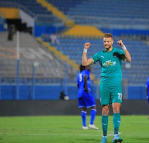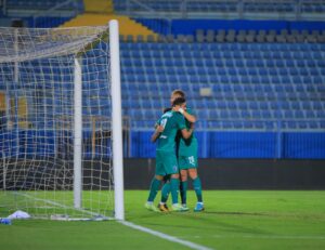 يسجل الهدف الأول أحمد سامي برأسية قوية من داخل منطقة الجزاء مرت لداخل الشباك في الدقيقة 5.