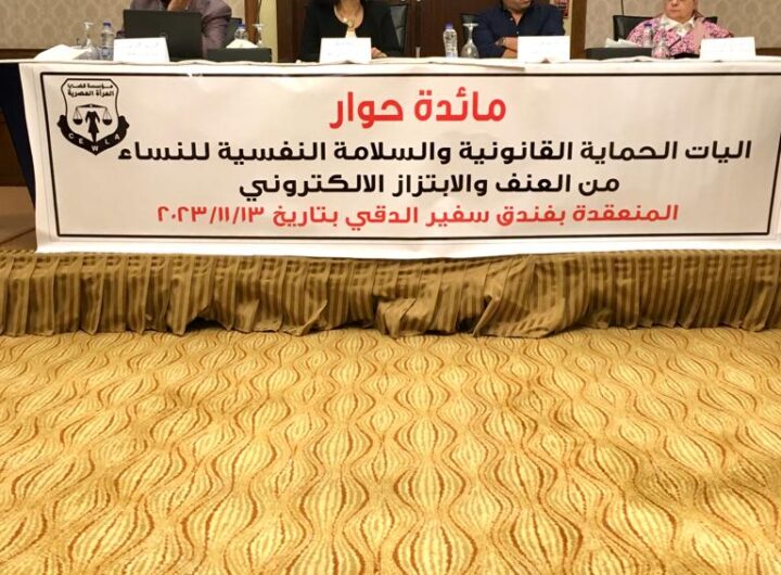 ابراهيم مجدى صالح أقامت مؤسسة قضايا المرأة المصرية مائدة حوار اليوم الإثنين الموافق 13 نوفمبر الجاري، بعنوان:” آليات الحماية القانونية والسلامة النفسية للنساء...